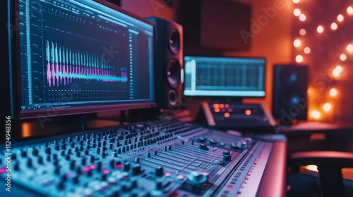 Creative music production session in a modern studio digital sound engineering cozy atmosphere intimate angle artistic vibes