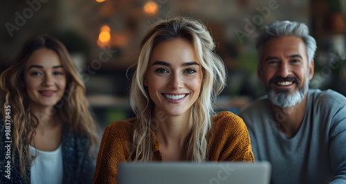 Creative Office Meeting Colleagues Collaborating on a Digital Project Using a Laptop for Planning and Brainstorming Showcasing Teamwork and Empowerment in a Corporate Setting