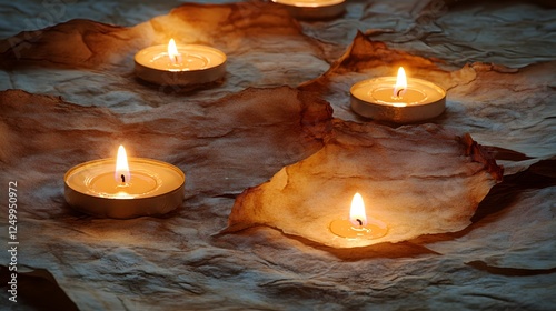 Creative outlines sketched on parchment warm candles illuminating the darkness with a soft inviting glow and warmth