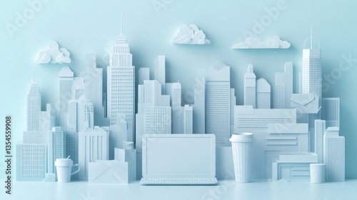 Creative paper art background showcasing office essentials with a 3D layered design in a modern workspace setting