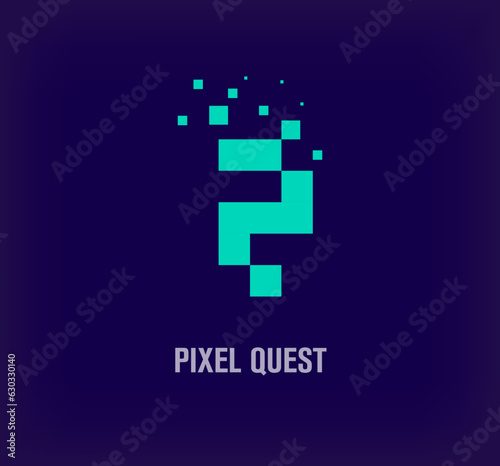 Creative pixel QUEST logo. Unique digital pixel art and pixel explosion template. vector