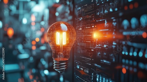 creative planning idea for financial and investment growth. glowing light bulb with futuristic graphic icon.