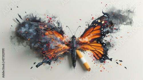 Creative poster with a cigarette turning into a butterfly, symbolizing freedom from smoking, artistic and inspirational design