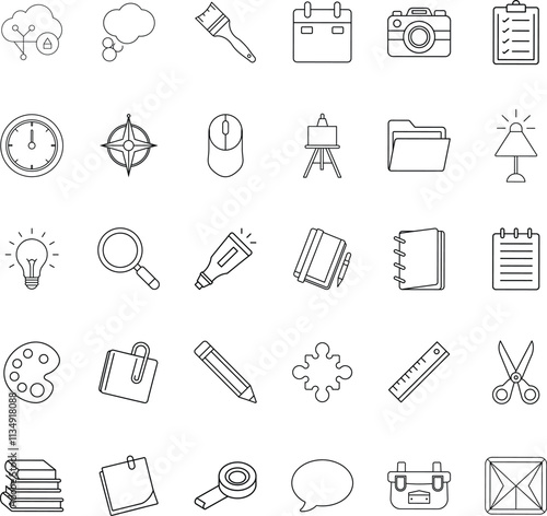 Creative Process Icons Tools, Ideas, and Organization Symbols
