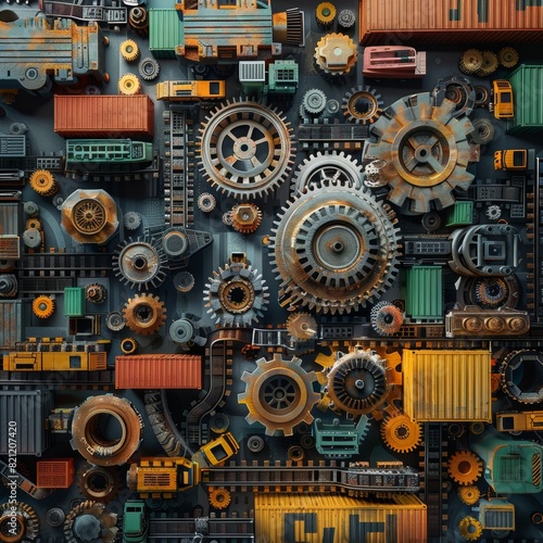 Creative Representation of a Logistics Network as an Intricate Clockwork Mechanism Highlighting Precision and Interconnection