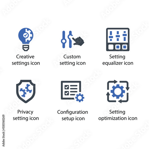 Creative settings, Custom setting, Set equalizer, Privacy setting, Setup, Setting optimization, icon