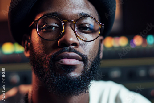Creative Sound Film Movie Producer in Studio During working process Vibrant Lighting, Generative AI