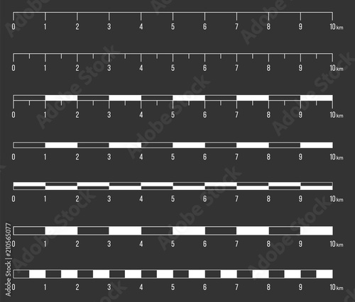 Creative vector illustration of map scale line set isolated on transparent background. Art design unit of measurement. Abstract concept mathematical ratio, fraction graphic element
