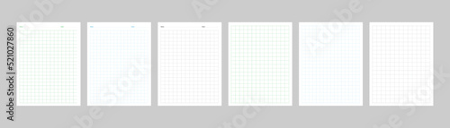 Creative vector illustration of realistic square, lined paper blank sheets set isolated on transparent background. Art design lines, grid page notebook with margin.