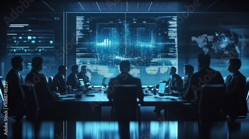 Creative visual of business people in corporate staff meeting . Concept of digital technology for marketing data analysis and investment decision making .