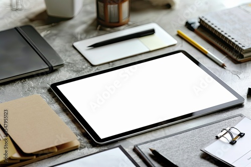 Creative Workspace Blank Business Cards Tablet and Mood Board for Freelancer
