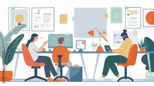 Creative Workspace with People Collaborating in Modern Office Setting