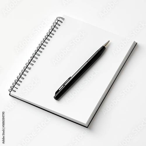 Creative writing action with notebook and pen in minimalist workspace for idea generation and planning