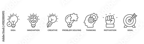 Creativity banner web icon illustration concept with icon of idea, innovation, creative, problem solving, thinking, motivation, goal