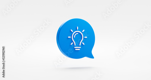 Creativity idea 3d icon isolated on white background with creative light bulb solution symbol or invention lightbulb think sign message bubble and success inspiration startup target brain development.