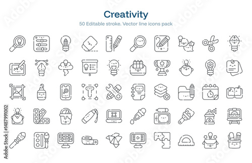 Creativity line icon pack. Creativity Stroke icon set. Editable Stroke icon