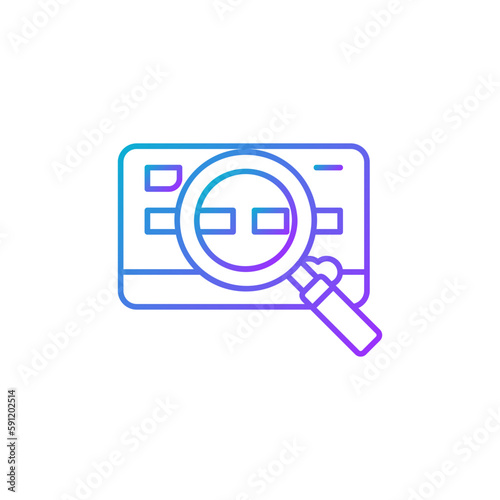 Credit card with magnifying glass, payment search, credit card and loupe gradient lineal icon. Shopping, online banking, finance symbol design.