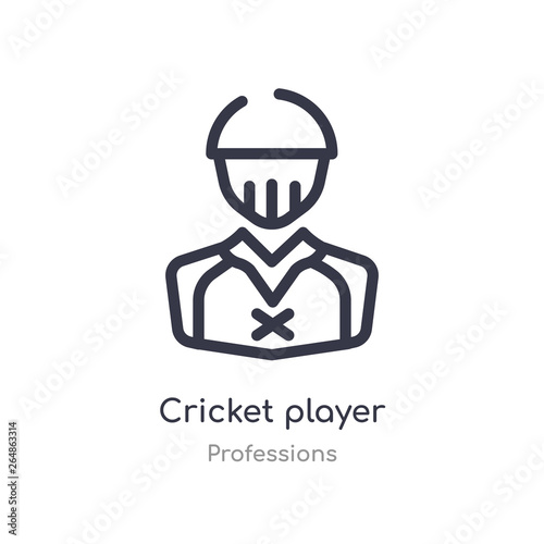 cricket player outline icon. isolated line vector illustration from professions collection. editable thin stroke cricket player icon on white background