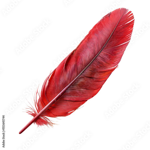 Crimson Quill: A single, vibrant red feather, elegantly poised against a clean backdrop. The rich color and intricate detail create a visually striking image.
