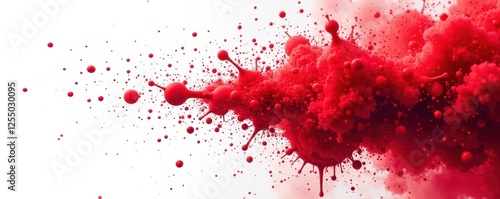Crimson splatters create a dynamic, minimalist composition on white , dye, drip