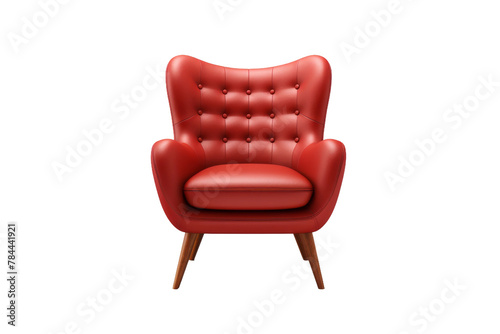 Crimson Throne: A Red Leather Chair With Wooden Legs. On White or PNG Transparent Background.