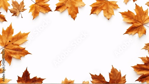 Crisp autumn maple leaves framing a pristine white canvas background