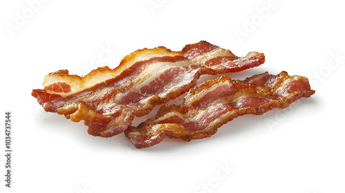 Crisp Fried Bacon on White Background, high-resolution e-commerce display, ideal for food product listings and promotions