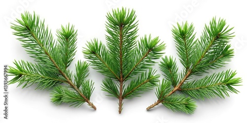 Crisp, high-resolution images: 3D-rendered green pine branches, isolated on white.