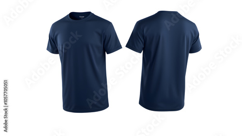 Crisp white background showcases sleek navy blue t-shirt mockup featuring clean front and back views. Generative AI
