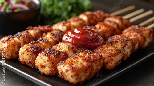Crispy Chicken Nuggets on Plate with Sauce
