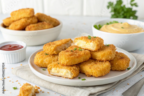 Crispy Chicken Nuggets with Dipping Sauce on a Serving Plate (7)