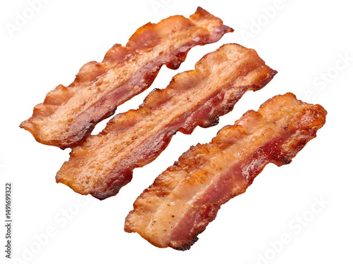 Crispy Cooked Bacon Strips Close Up Isolated on transparent background cutout, PNG file, Cutout file