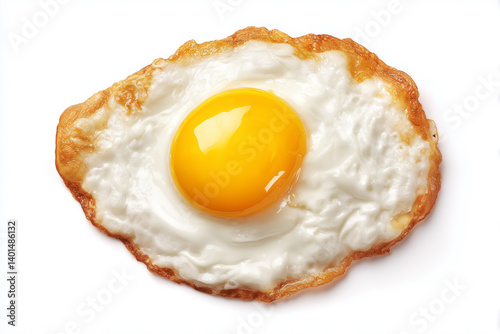 Crispy fried egg with a golden yolk on a white background showcasing breakfast simplicity and culinary delight