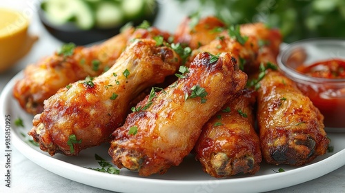 crispy golden fried chicken wings arranged on white plate appetizing closeup