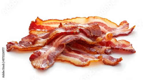 Crispy, golden fried slices of bacon, perfectly cooked and delicious, isolated on a white background ready for your culinary creations.