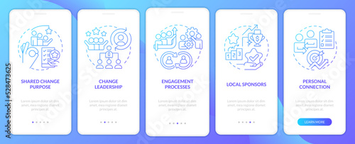 Critical success factors blue gradient onboarding mobile app screen. Plan walkthrough 5 steps graphic instructions with linear concepts. UI, UX, GUI template. Myriad Pro-Bold, Regular fonts used