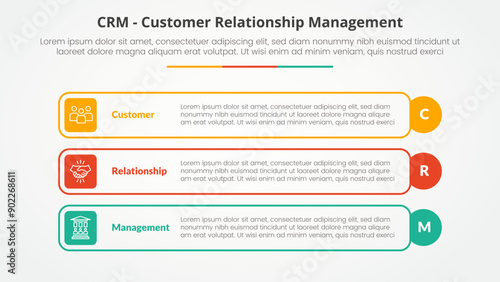 CRM customer relationship management infographic concept for slide presentation with outline rectangle box and circle edge with 3 point list with flat style
