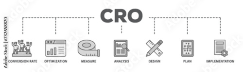 CRO banner web icon illustration concept with icon of measure, analysis, design, plan, and implementation icon live stroke and easy to edit