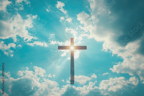 Cross of Jesus Christ in the sky with clouds. Christian easter. Conceptual religious symbol. with generative ai