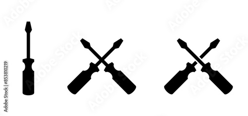 Cross placed, screwdriver set. Screwdrivers tools. Repair and renovation concept. Workshop, assembly tool. For service toolbox or toolkit. Hand tool. Cross.