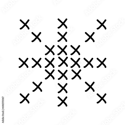 Cross stitch snowflake, winter holidays design element, flat vector outline for coloring book