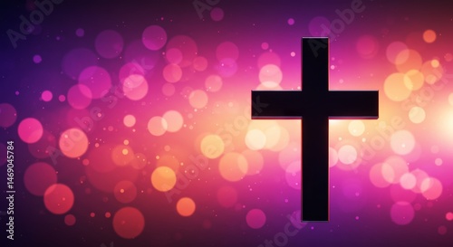 Cross Symbol with Bokeh Lights on Colorful Background, Christianity Faith