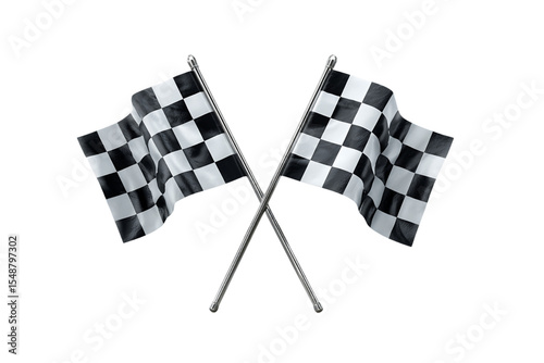 Crossed Checkered Race Flags on Transparent Background, PNG