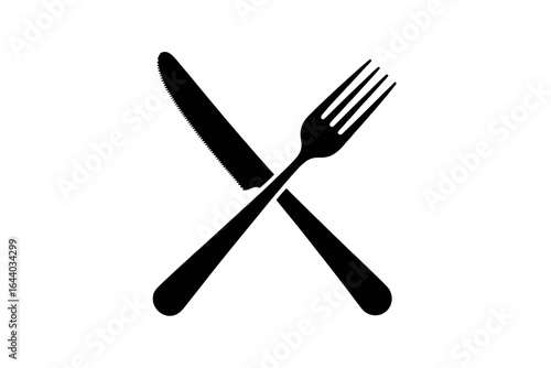 Crossed fork and knife representing dining and culinary experiences in black silhouette style