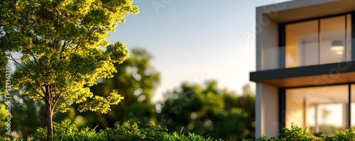 Cross-section view of a modern home in 3D, showcasing minimalist design elements like open spaces, simple color palettes, and natural light