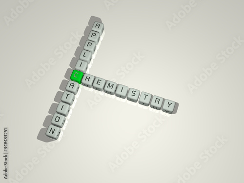 crosswords of CHEMISTRY APPLICATION arranged by cubic letters on a mirror floor, concept meaning and presentation