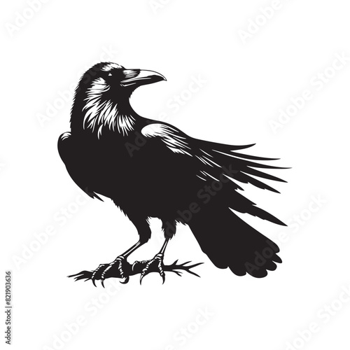 Crow Vector Silhouette: Bold Black Vector Art Capturing the Mysterious Aura and Intelligence of These Iconic Birds - Crow Illustration.