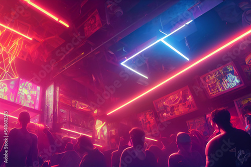 Crowded futuristic cyberpunk street and marketplace, Concept Art, Digital Illustration