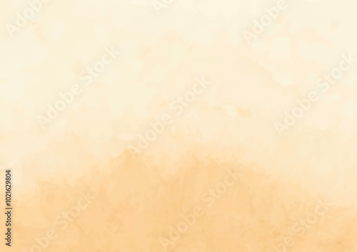 Crumpled scratch old paper sheet. Watercolor peach beige background for paper design. Manuscript, burnt rough roll of parchment paper texture. Pastel gold yellow background white textured center tan