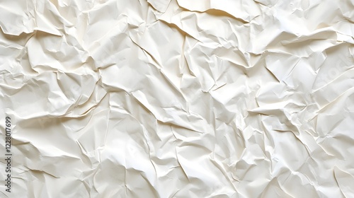 Crumpled white paper texture, extreme close-up, high contrast, abstract pattern, wrinkled surface, subtle shadows, minimalist design, tactile quality, soft lighting, monochromatic, organic shapes